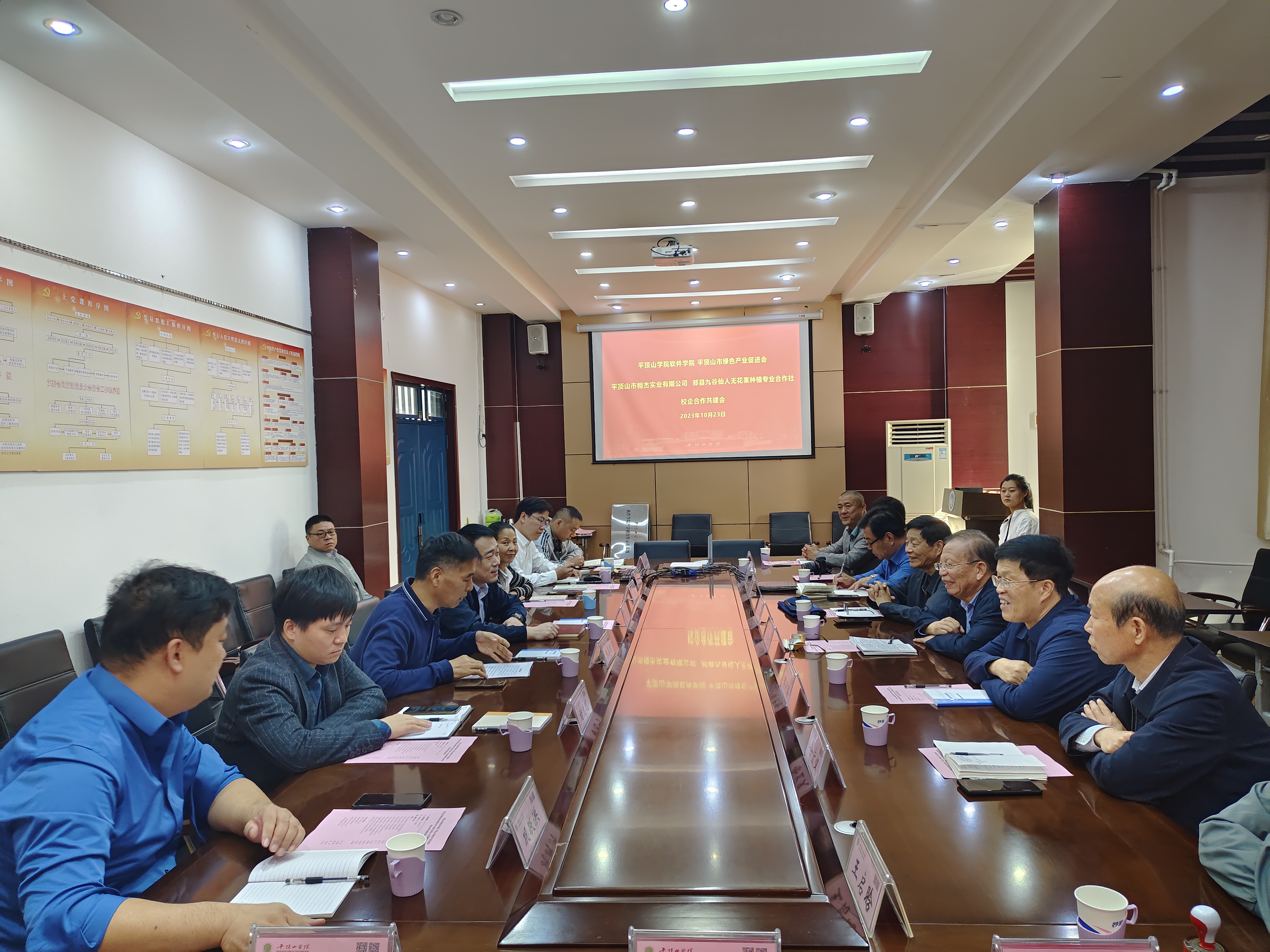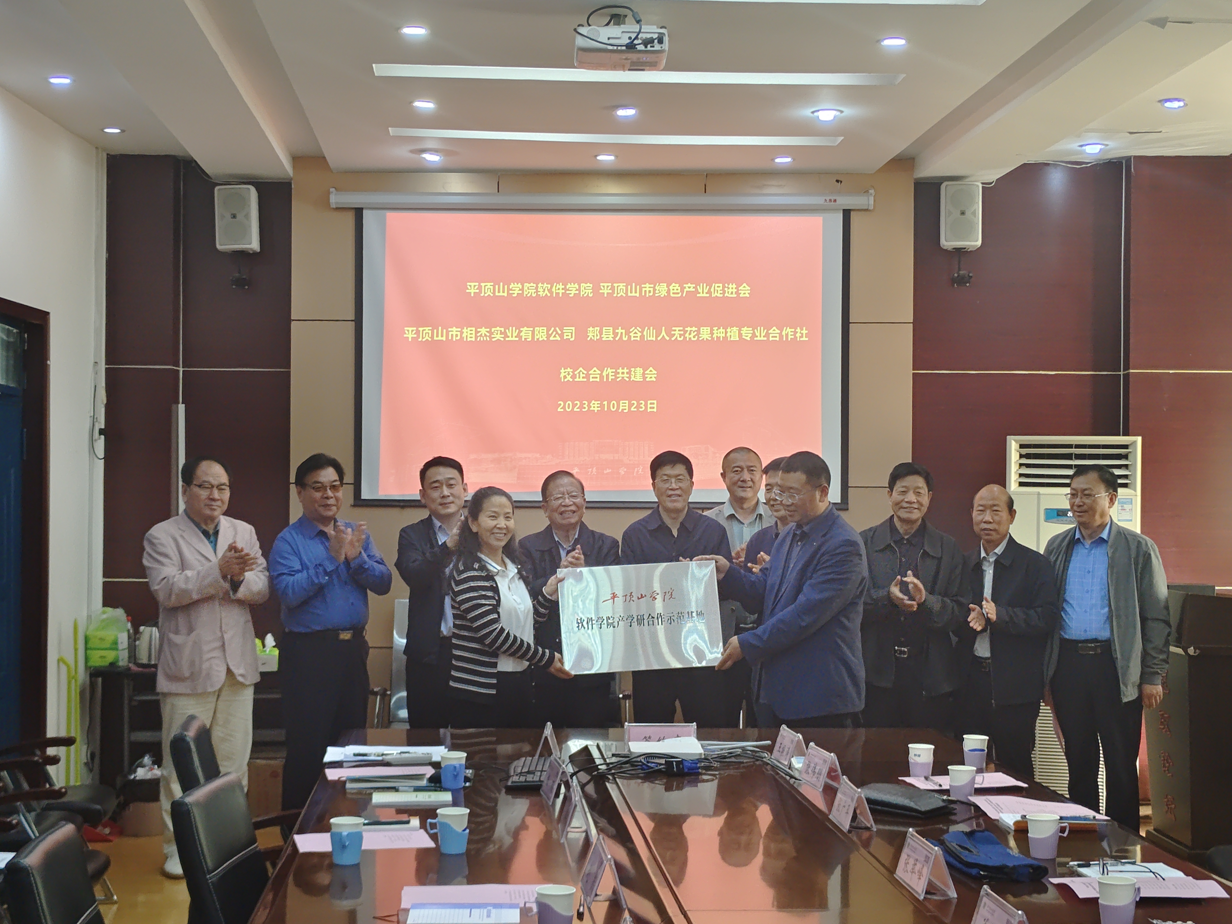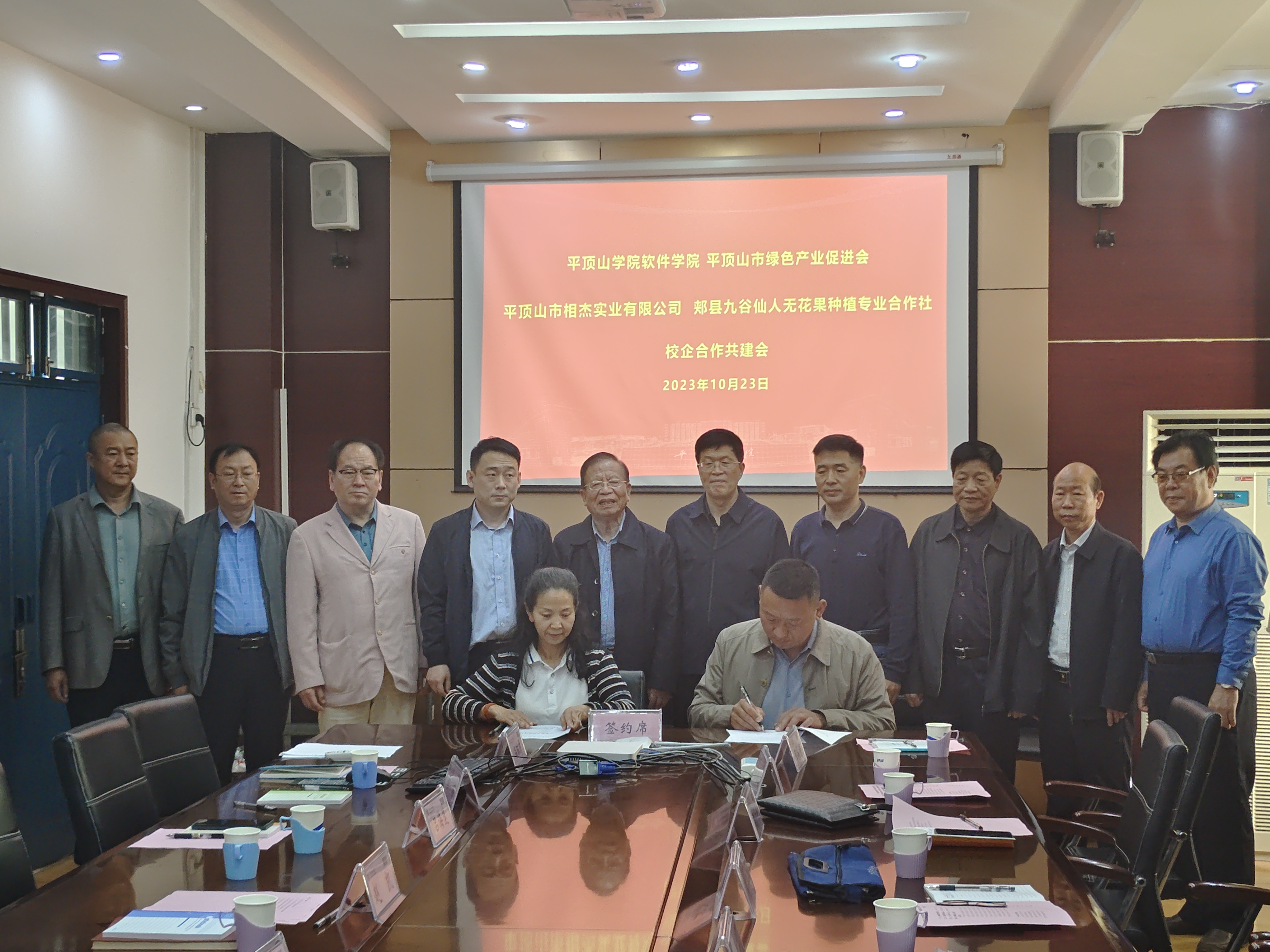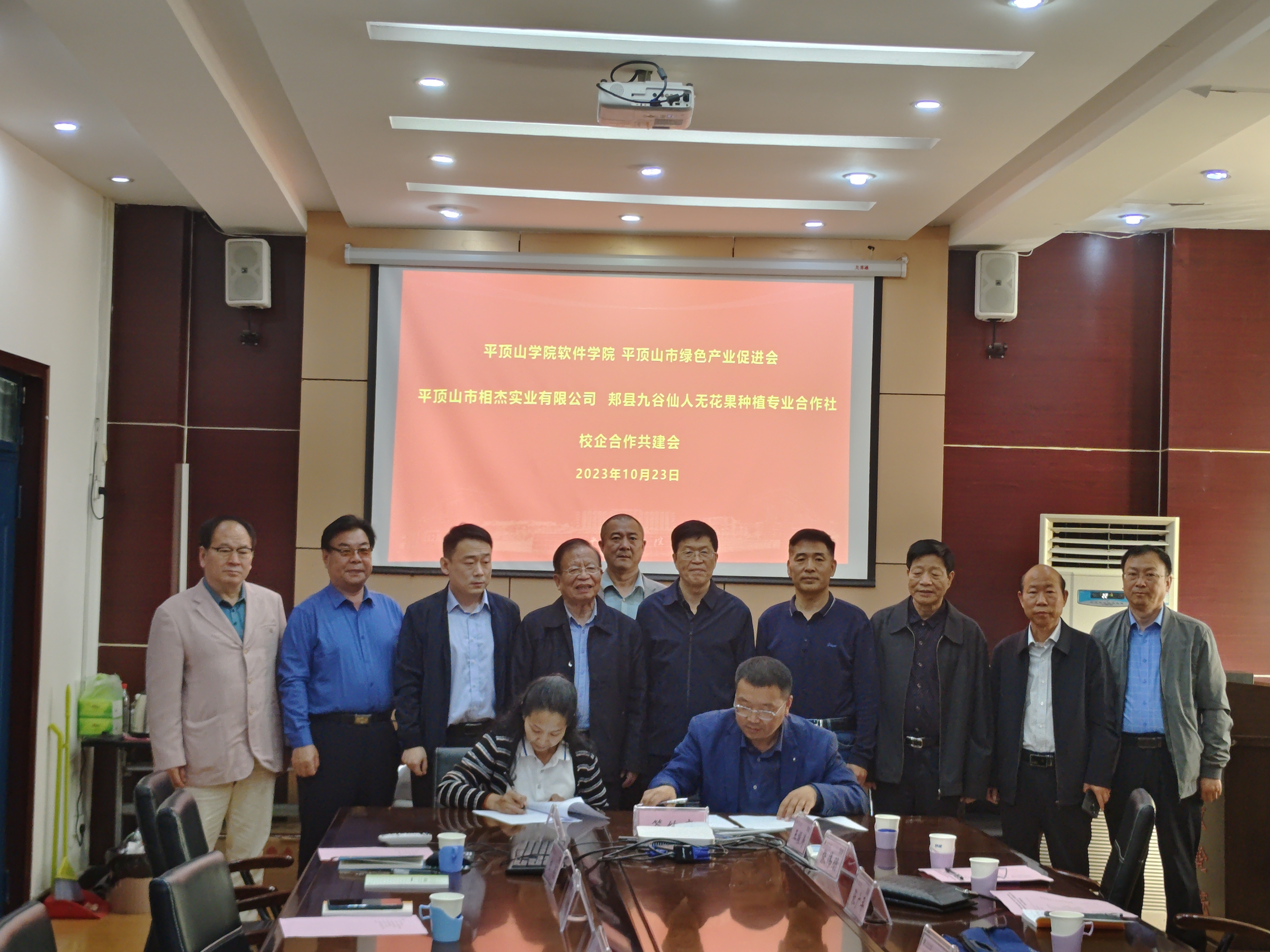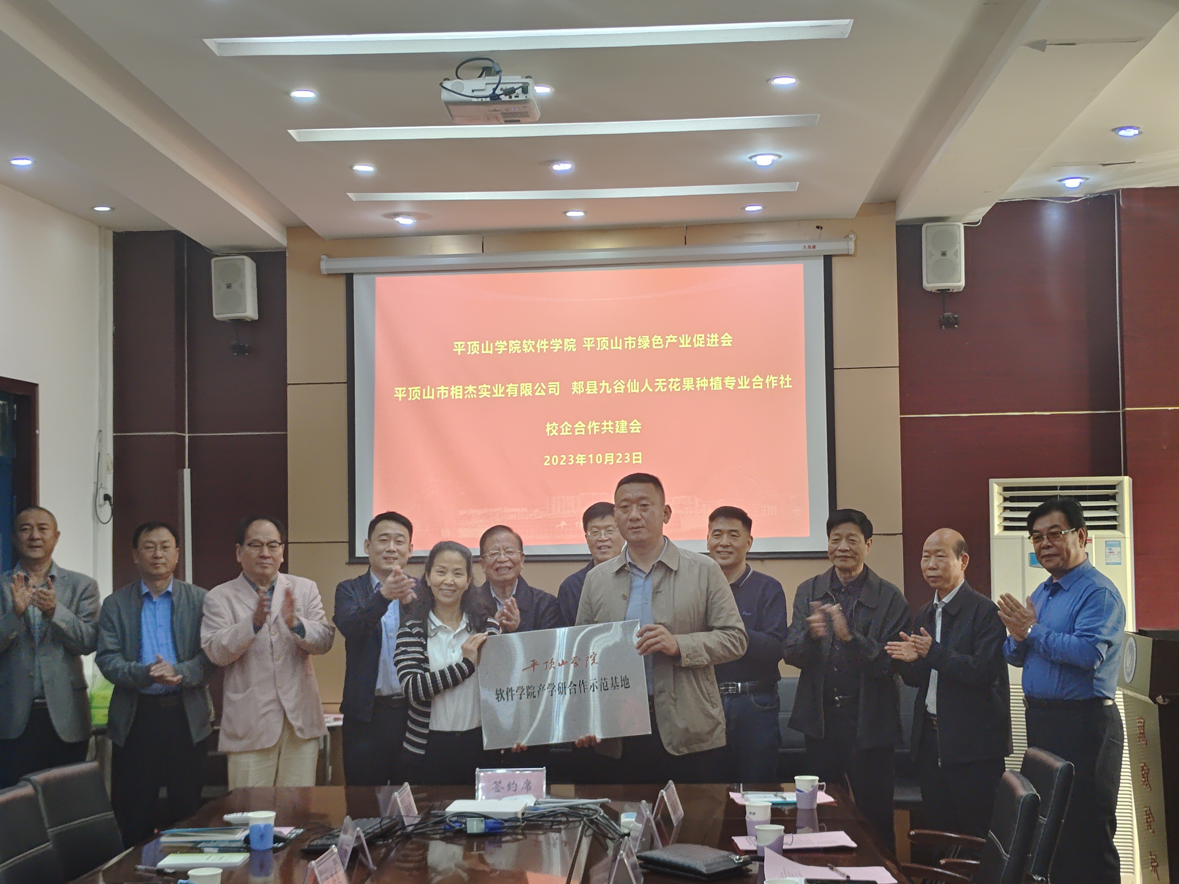 为进一步加强与企业交流合作,为公司师生搭建科研创新平台、提升协同创新能力,服务区域经济社会高质量发展。在平顶山市绿色产业促进会(以下简称绿促会)关心指导下,10月23日,365英国上市公司与平顶山市相杰实业有限公司、郏县九谷仙人无花果种植专业合作社产学研合作示范基地签约暨授牌仪式在科技楼214会议室举行。绿促会首席顾问关源良一行九人、平顶山市相杰实业有限公司总经理李相杰、郏县九谷仙人无花果种植专业合作社总经理李晓鹏、公司地方合作处处长赵凯,公司领导班子成员以及博士教师代表参加了签约仪式。仪式由公司党委书记张喜顺主持。