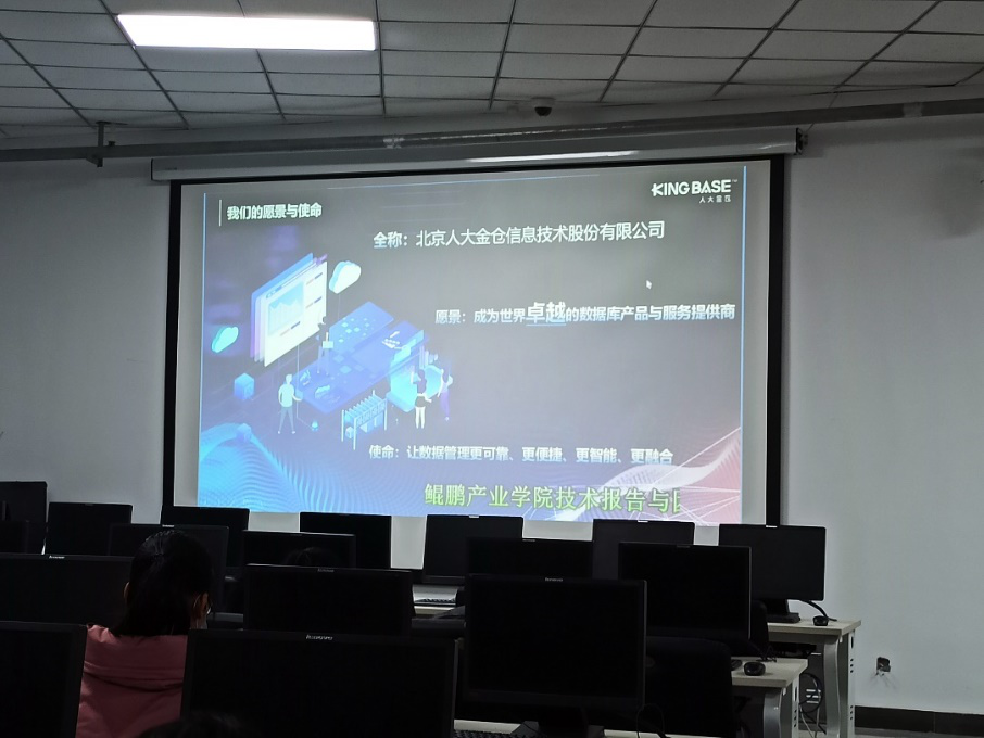北京人大金仓信息技术股份有限公司周传胜经理,通过远程视频会议的形式为大家作了报告。周总介绍了公司发展历程和信创产业的背景,通过分析人才需求和人才缺口,详细介绍了金仓产品数据库管理系统,还对后续团队课程建设和安排作了简要说明。