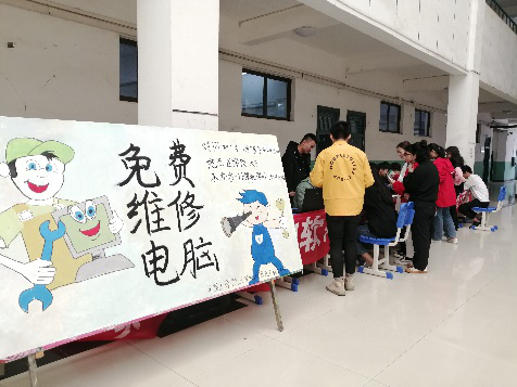 为减轻同学们负担,帮助同学们深入了解电脑知识,计算机公司于11月7日在医公司教学楼大厅开展志愿维修电脑活动,共计二十名志愿者参与此次活动。
