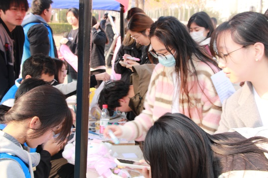 同学们通过文字书写向福利院儿童表达关心,送去温暖;通过动手制作小玩具向孩子们送去冬天的快乐,陪伴他们度过这个凛冬;通过绘画去表达自己的祝愿与关怀,让孩子们看到美丽的世界。活动尾声,工作人员向活动参与者发放爱心卡片,捐赠人员在卡片上写下对福利院儿童的祝福话语和个人信息。活动结束后,工作人员将收集到的礼物分类归纳后邮寄给我市福利院工作人员并转交到小朋友们的手中。