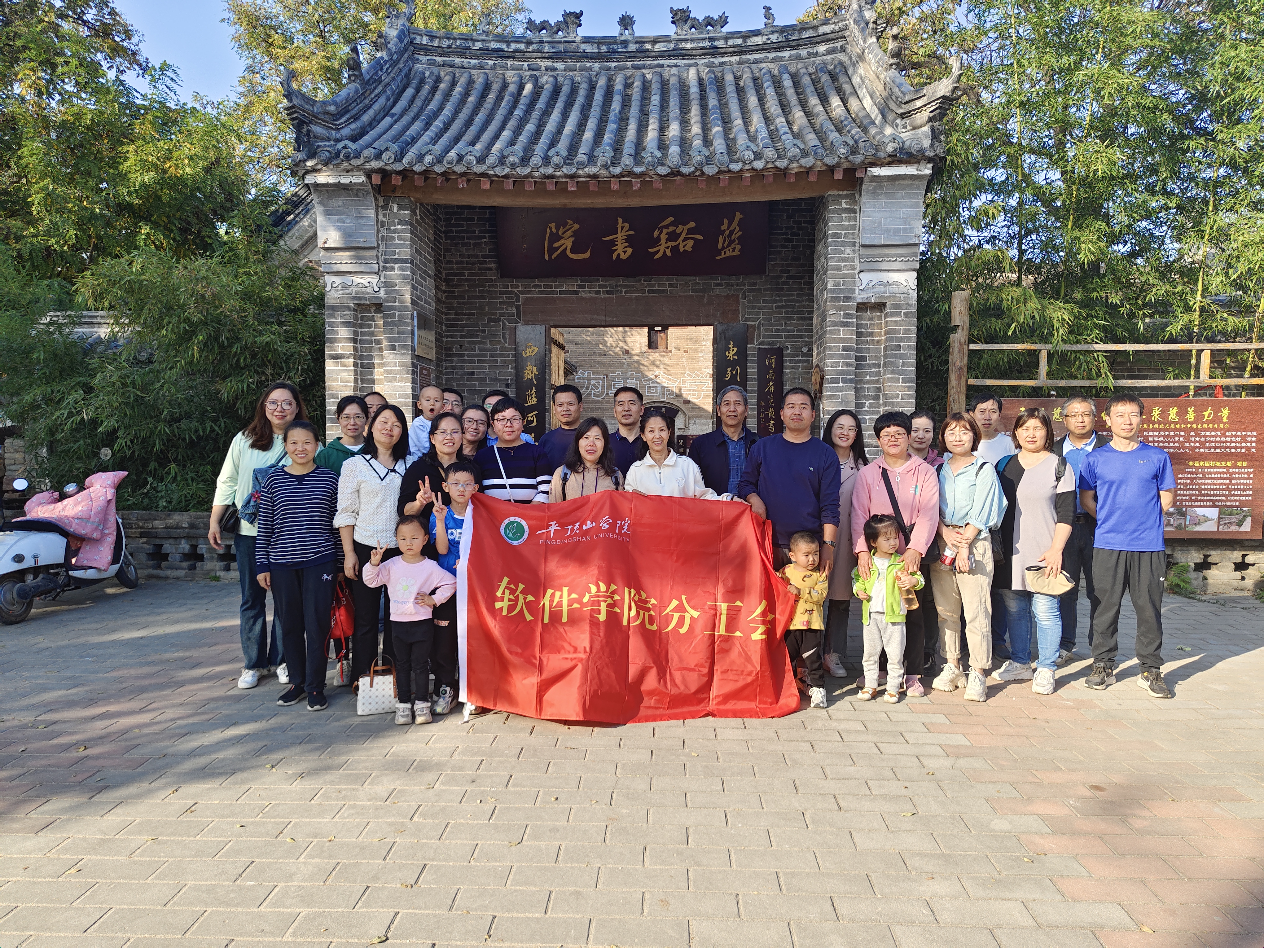 采摘结束后,教职工们前往附近的郏县冢头镇李渡口古村落参观,漫步三街六巷十八坊,浓厚的文化气息扑面而来,大家兴致勃勃地参观了古寨墙、蓝河渡口遗址、李冠儒老宅、中原第一花、算好人生三笔账等景点并合影留念。