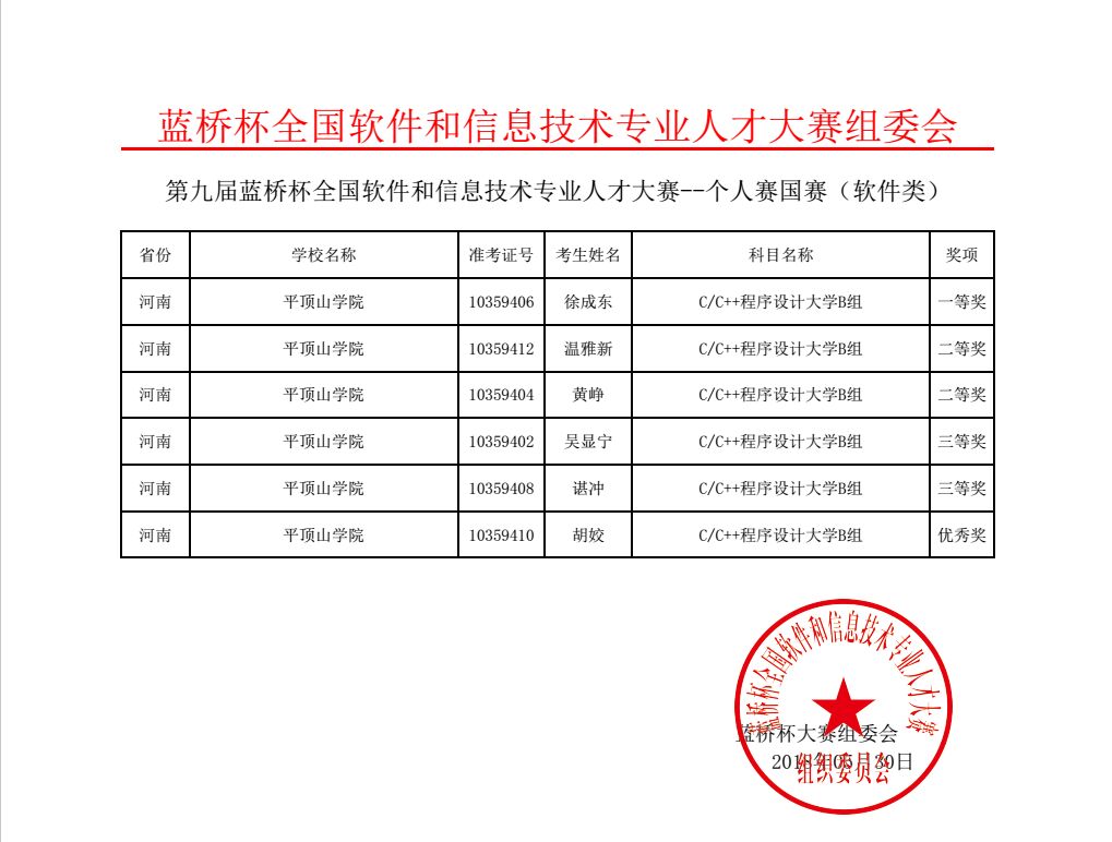 公司员工不畏强手、从容应对,凭借较强的实践动手能力和扎实的编程功底,6名员工全部获奖。其中,计算机公司(365英国上市公司)徐成东获全国一等奖,温雅新、黄峥获全国二等奖,谌冲获全国三等奖,胡姣获全国优秀奖;信息工程公司的吴显宁获全国三等奖。吕海莲、张国平、李永明等获得“优秀指导教师”荣誉称号。在此次比赛中,公司表现突出,获得“河南赛区优秀组织单位奖”和“河南赛区优胜公司奖”。