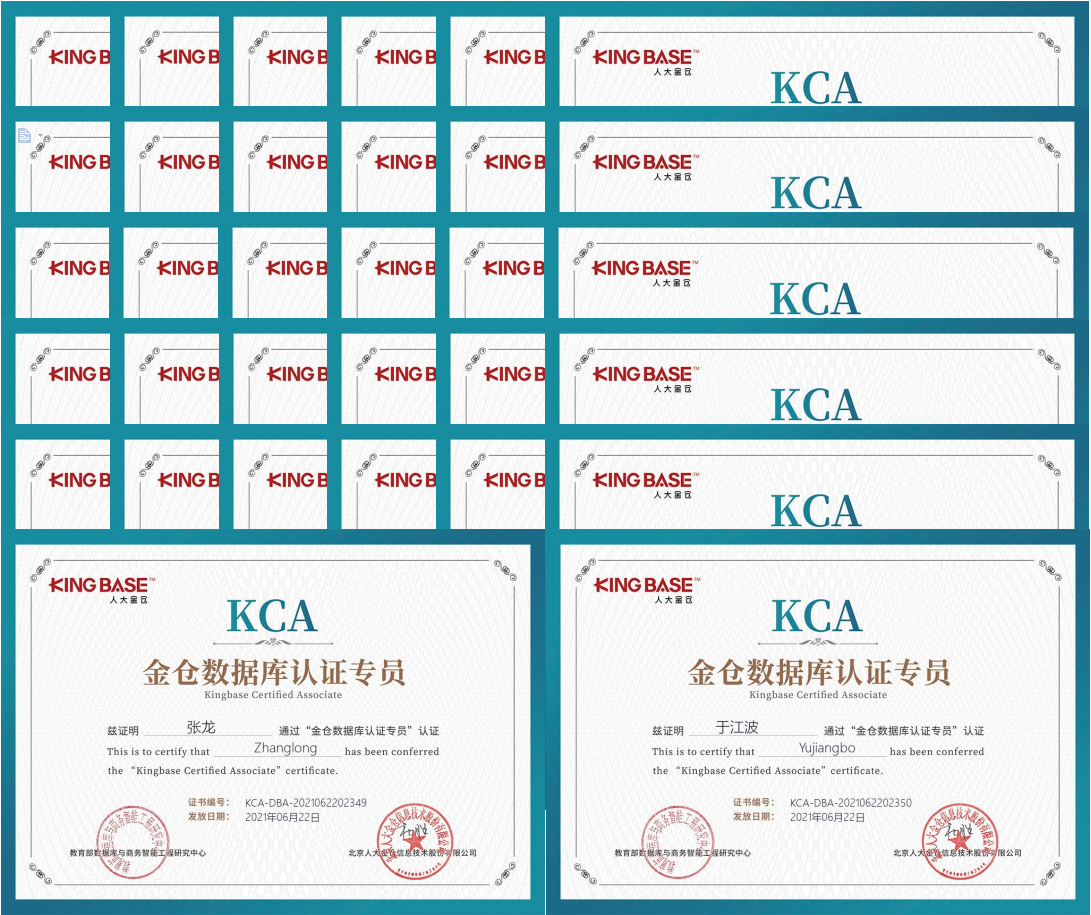 2021年6月25日下午,鲲鹏产业公司组织了人大金仓数据库认证专员(KCA)考试,数据库与数据分析创新工作室32名员工参加并顺利通过。KCA认证是人大金仓数据库认证体系的基础认证,内容涵盖金仓数据库的装卸启停、对象管理器、命令行工具、数据迁移工具、数据定义、数据控制、数据操纵、数据查询、简单的数据库监控和运维等数据库管理员的日常基础工作。通过KCA认证后可承担企业数据库的规划、使用、咨询和管理工作。