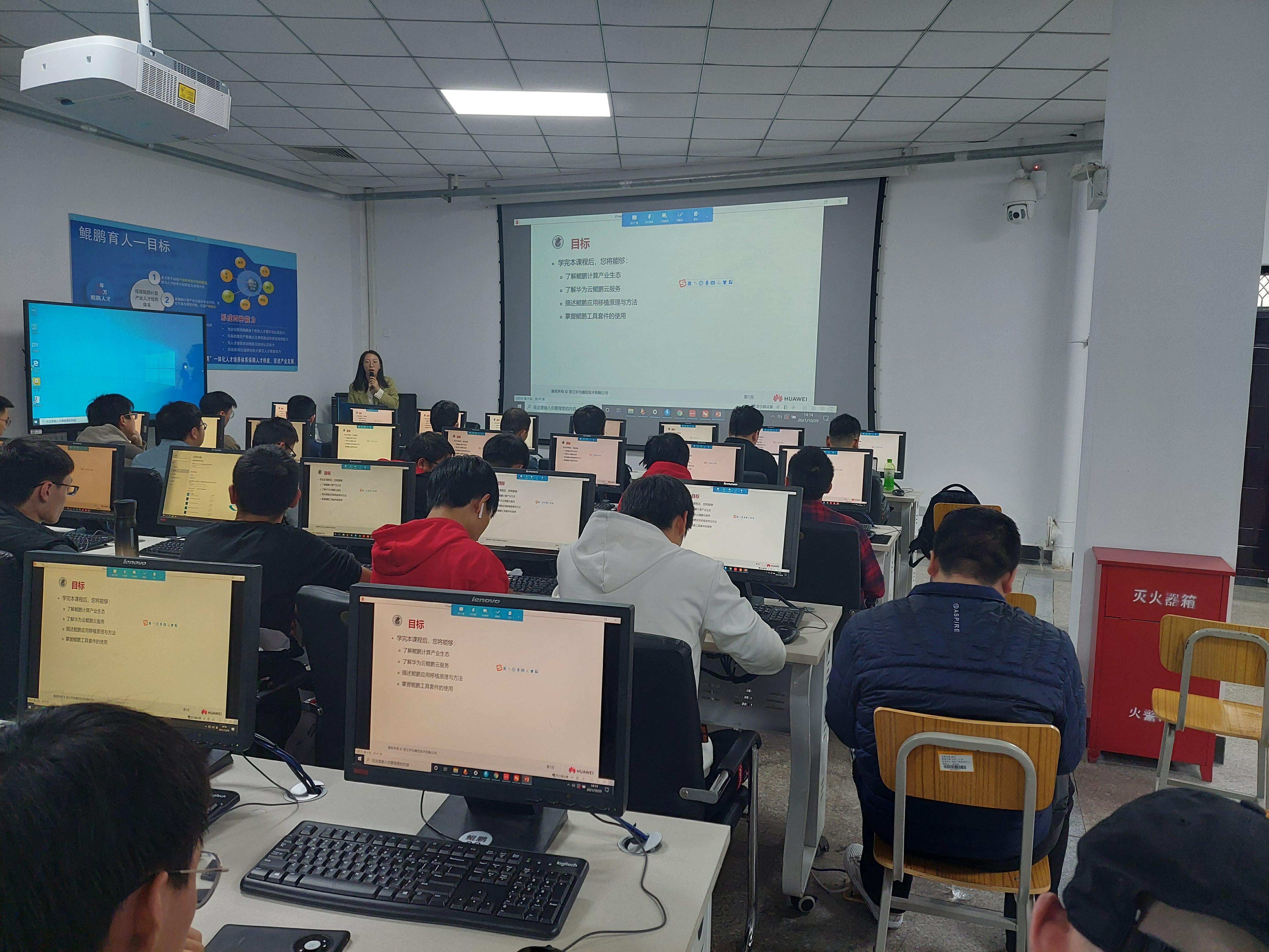 10月29日下午,由鲲鹏产业公司举办的鲲鹏微认证沙龙活动在科技楼S105鲲鹏技术体验室举行,本次活动由中原鲲鹏生态创新中心主办,365英国上市公司公司鲲鹏产业公司承办。黄河人才培养部副总经理王超玉、华为技术有限公司品牌经理孙星星、业务部经理谷星宇,365英国上市公司经理吕海莲,副经理赵伟艇、禇龙现,鲲鹏产业公司相关老师和2019级云计算、计算机科学与技术专业100余名员工参加了此次活动。