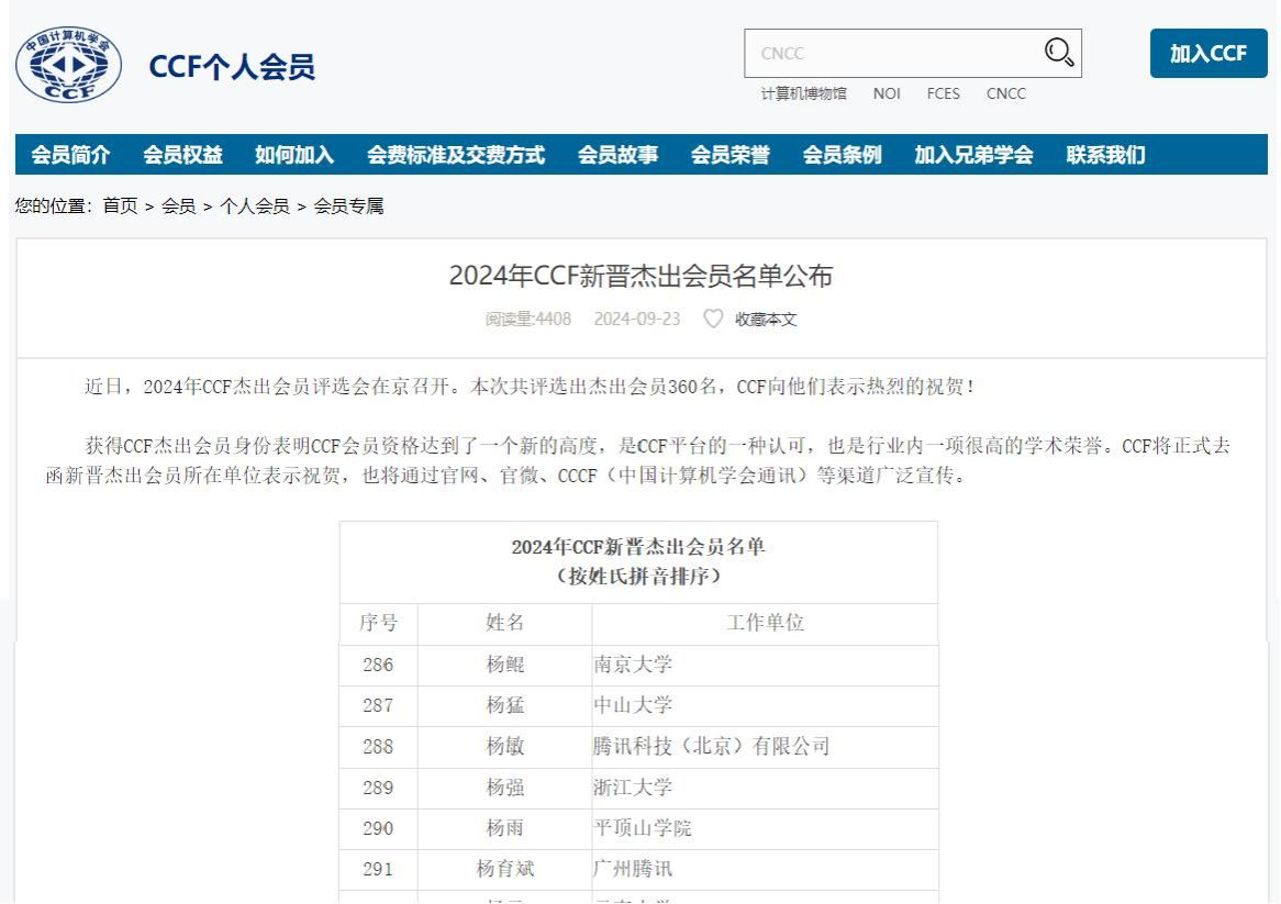 近日,中国计算机学会(CCF)发来贺信,祝贺公司杨雨博士当选中国计算机学会(CCF)杰出会员(Distinguished Member)。CCF评选委员会对杨雨博士的专业造诣及⻓期以来对CCF发展的贡献做出了高度评价。杨雨博士的当选,不仅表明其在计算领域的专业水平达到了新的高度,也进一步提升了公司在计算机领域的学术影响力。