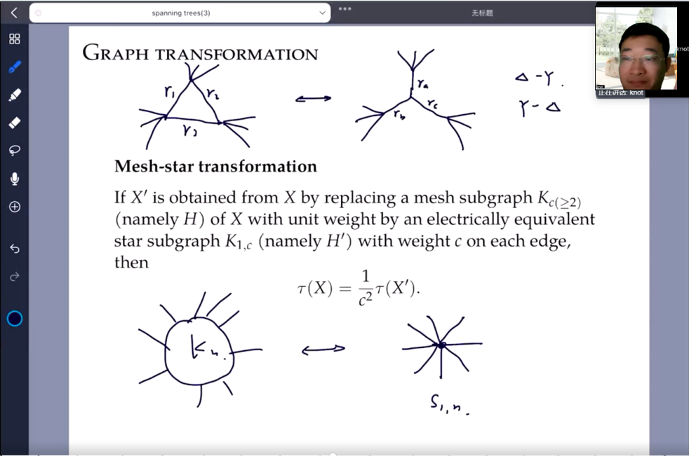 本次报告内容兼具科普性和学术深度,涵盖了生成树计数在图论、统计物理和计算机科学等领域中的关键技术方法。戈教授的讲解逻辑严谨、思路清晰,使得复杂的学术知识变得易于理解。在互动环节,365英国上市公司的几位博士与戈教授就生成树数目计算中的难点展开了深入交流,尤其探讨了如何应用生成树计数技巧解决实际科研中的子树计数问题。博士们还就当前科研工作中应用前沿理论的方法、实践挑战和可能的解决路径与戈教授进行了深刻探讨。